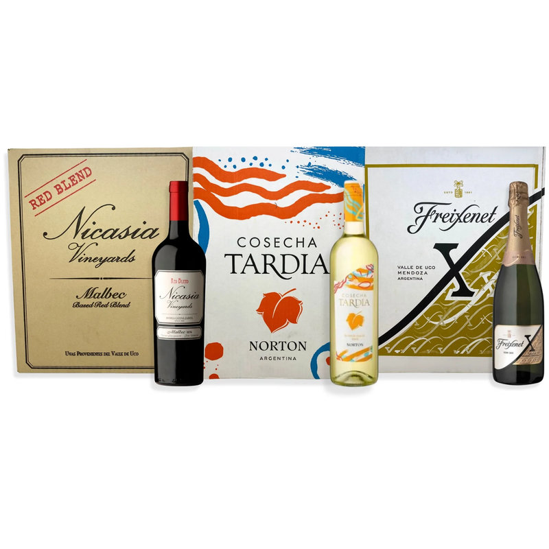 Incluye 6 Botellas de Nicasia Malbec 750ml + 6 Botellas de Cosecha Tardía Blanco 750ml + 6 Botellas de Freixenet X Demi Sec 750ml