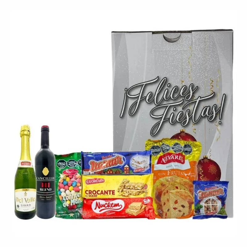 La Caja Navideña Felices Fiestas Gris Nevares Georgalos es una excelente opción para regalar afecto, sabor y tradición en estas fiestas. Presentada en un packaging sobrio y elegante, esta caja está pensada para compartir en familia o sorprender a alguien especial con una selección de productos clásicos navideños, cuidadosamente elegidos para disfrutar en la mesa de fin de año.