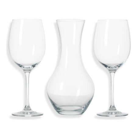 Tanto el decantador como las copas están fabricados con vidrio de alta calidad, ofreciendo claridad, resistencia y presentación impecable. El estuche, por su parte, realza la propuesta con una presentación ideal para regalo, eventos especiales o uso profesional.