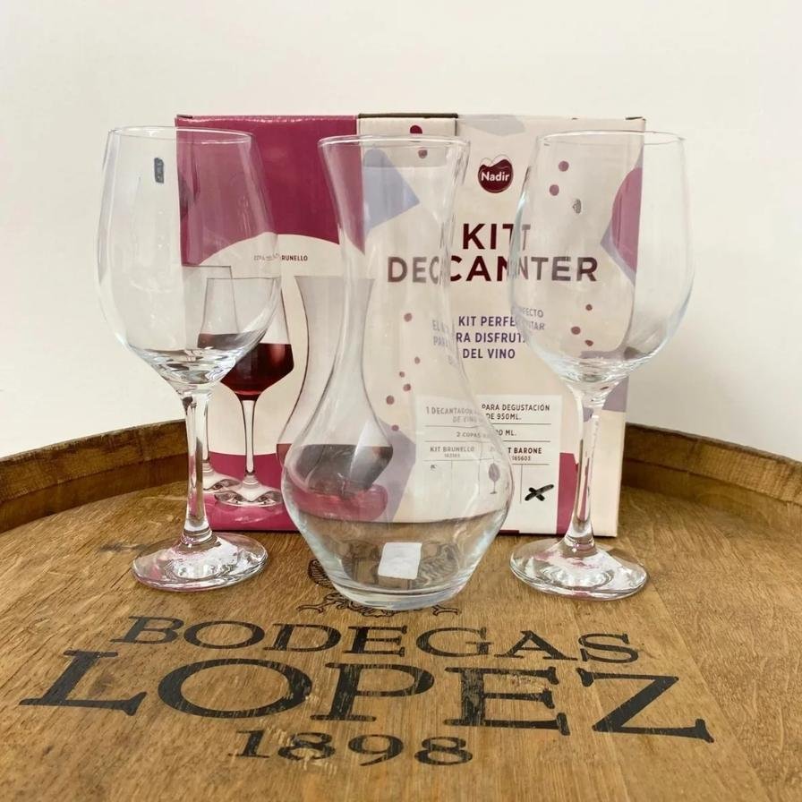 Kit Decantador Nadir 950ml + 2 Copas Barone 490ml c/Estuche – Elegancia, oxigenación y servicio profesional en un solo set