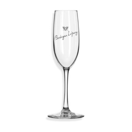 La copa de champagne de Bodegas López presenta un diseño fino y estilizado, ideal para espumantes, vinos dulces y bebidas frescas. Su formato flûte de 200ml, con cuerpo esbelto y base robusta, permite: